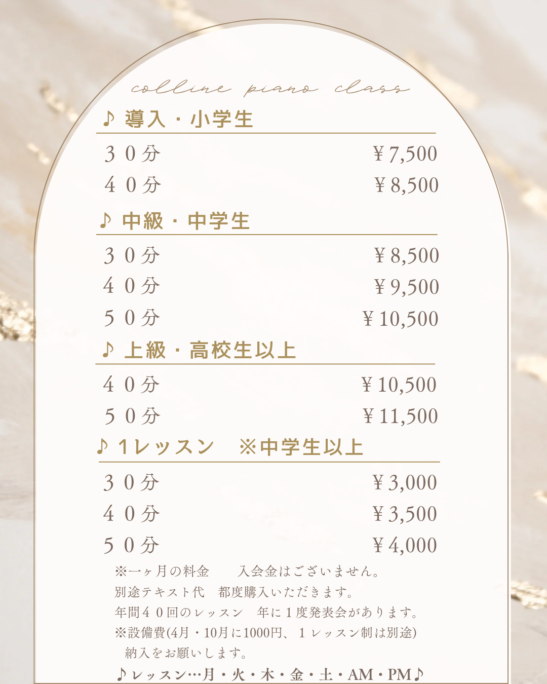 レッスン料金については、